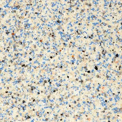 StoneScapes Mini Aqua Blue pool finish creates medium blue water color and is comprised of aqua blue pigmented white Portland cement and features natural black, gold and white quartz pebble aggregates.
