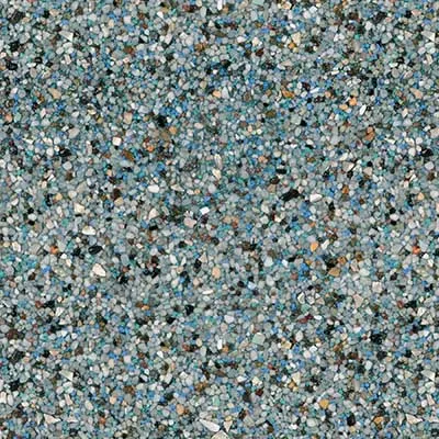 StoneScapes Mini Caribbean Blue creates medium blue to blue green water color and is comprised of blue/gray pigmented white Portland cement and natural black and gold quartz pebble aggregates.